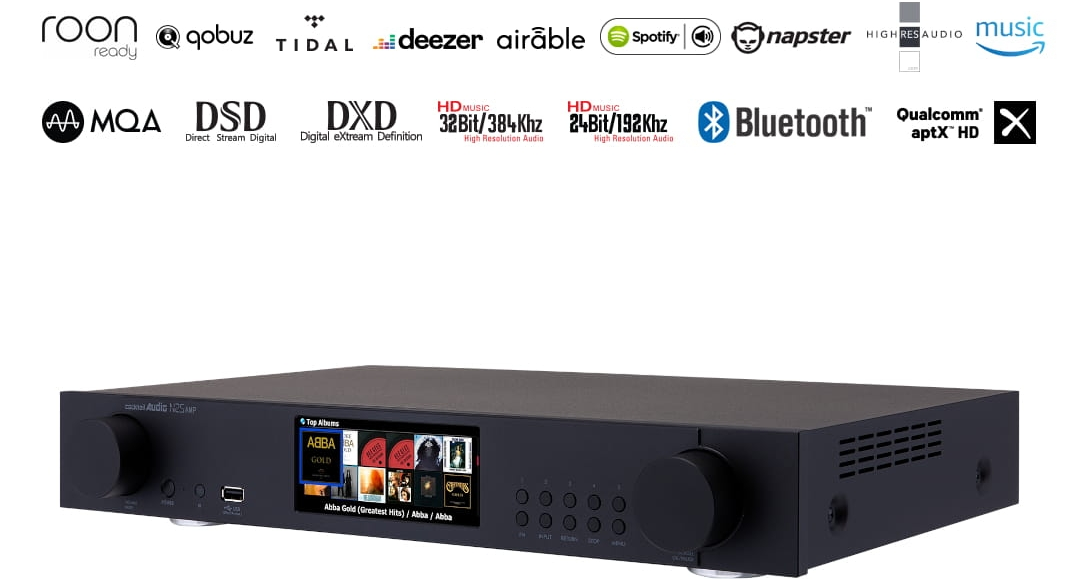 Аппарат поддерживает практически все современные аудиоформаты, включая WAV, AIFF, DSD, MQA, DXD, HD FLAC, ALAC и многие другие. Музыку можно воспроизводить как с локальных USB-накопителей или NAS-серверов, так и через ведущие стриминговые сервисы: