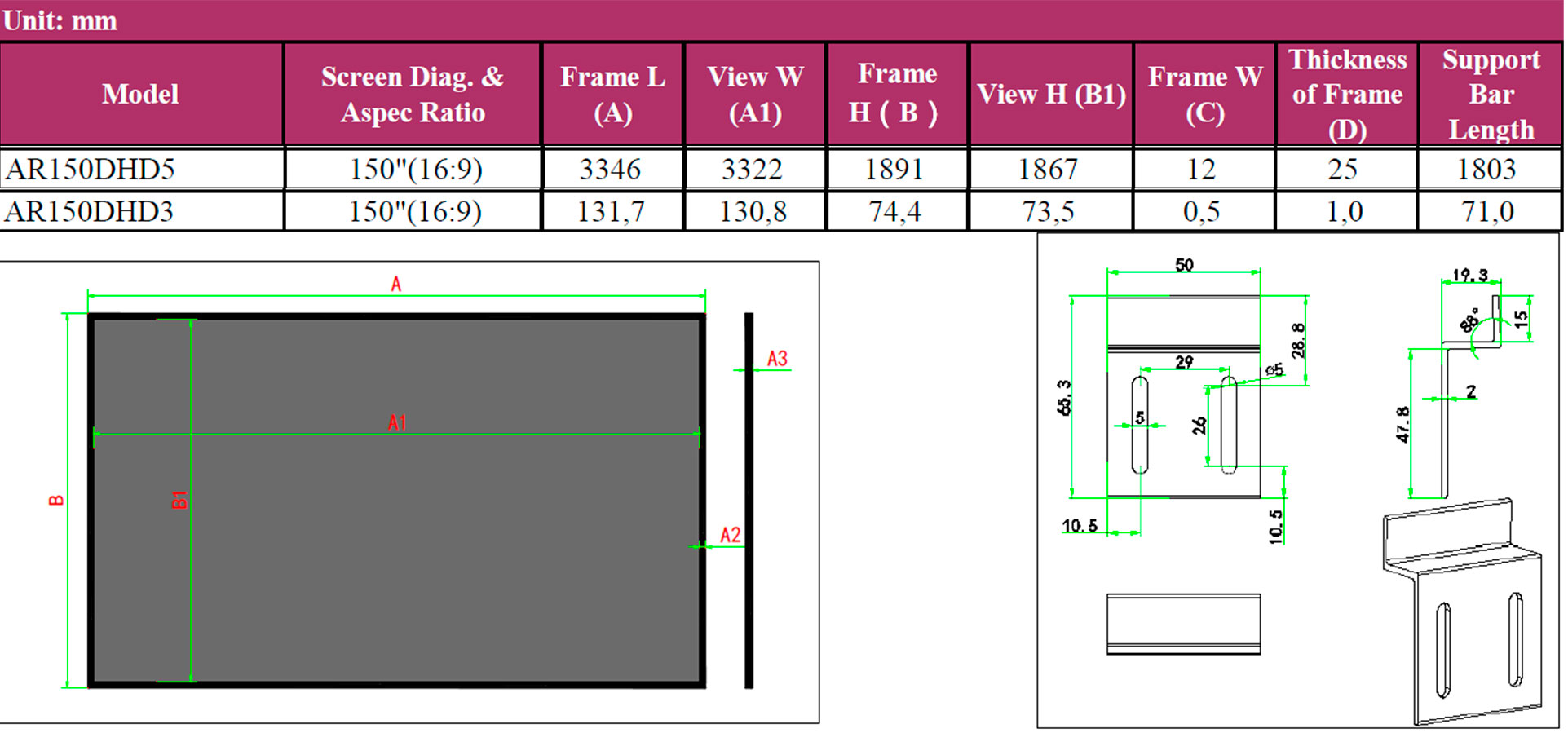 Экран с диагональю 150 дюймов изготовлен из современного материала CineGrey, который отличается высокой прочностью, устойчивостью к износу и простотой в уходе. Поверхность CineGrey обеспечивает чёткое и контрастное изображение даже при умеренном уровне внешней освещённости, а коэффициент усиления 1.1 гарантирует широкий угол обзора без потери яркости и насыщенности цветов. Благодаря этому экран отлично подходит как для домашнего кинотеатра, так и для учебных или презентационных залов.