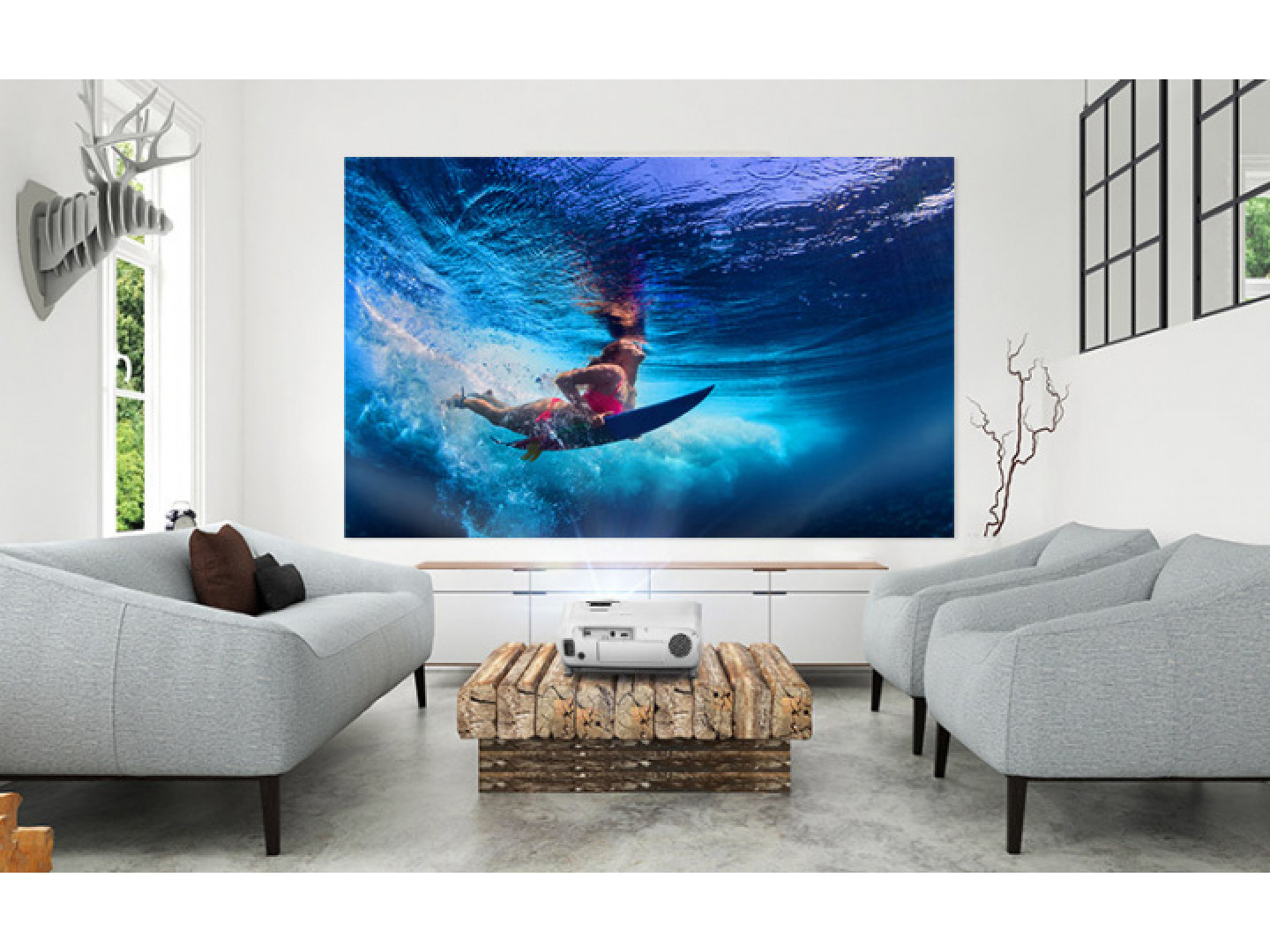 С помощью этого Full HD проектора для домашнего кинотеатра вы можете наслаждаться изображением на большом экране до 332 дюймов (762 см). Он качественно передаёт самые атмосферные сцены с глубоким черным цветом и четкими деталями в тенях, может увеличивать яркость в тёмных областях изображения за счет коррекции тёмной гаммы и поддерживает формат изображения 21:9, который используется в компьютерных играх.