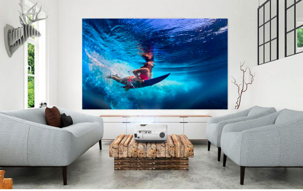 С помощью этого Full HD проектора для домашнего кинотеатра вы можете наслаждаться изображением на большом экране до 332 дюймов (762 см). Он качественно передаёт самые атмосферные сцены с глубоким черным цветом и четкими деталями в тенях, может увеличивать яркость в тёмных областях изображения за счет коррекции тёмной гаммы и поддерживает формат изображения 21:9, который используется в компьютерных играх.