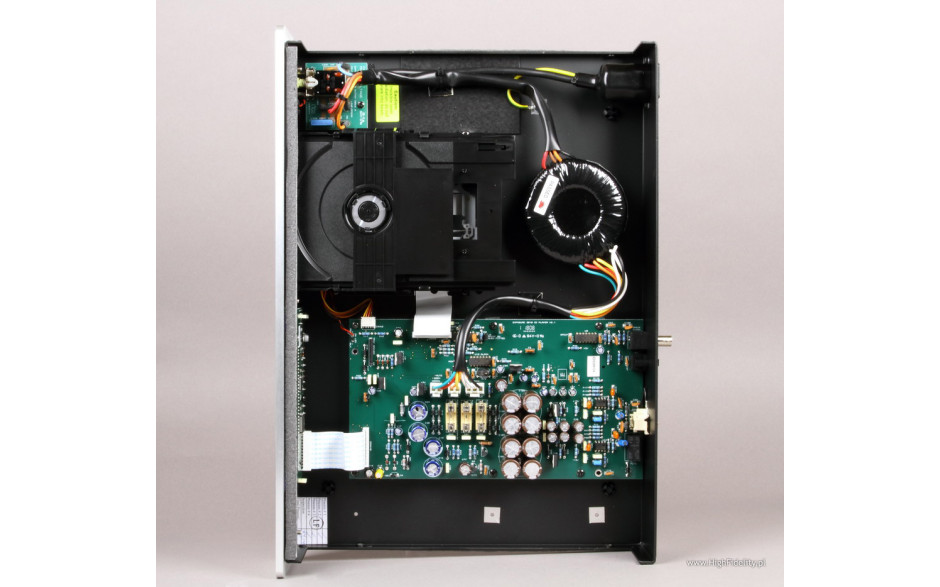 - Крупный тороидальный трансформатор с отдельными обмотками для механики CD-привода и аналоговых аудио каскадов
