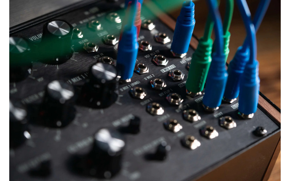 Полумодульный синтезатор Moog Labyrinth сочетает простоту готовой конфигурации и свободу ручной коммутации. Это означает, что базовые соединения уже встроены, и музыкант может работать с ними сразу после включения. При этом при необходимости маршруты можно перенастроить с помощью патч-точек.
