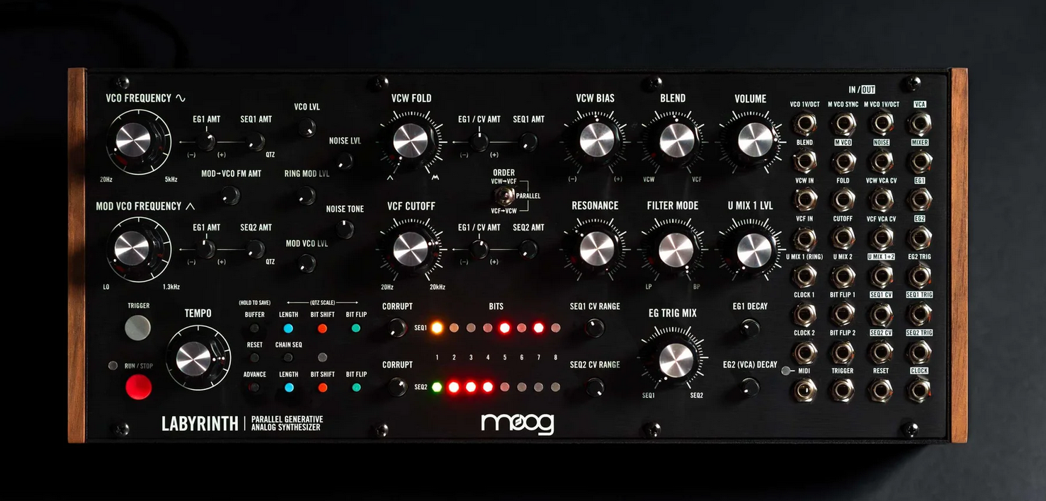 Синтезатор Moog Labyrinth открывает новые горизонты в создании сложных звуковых структур.