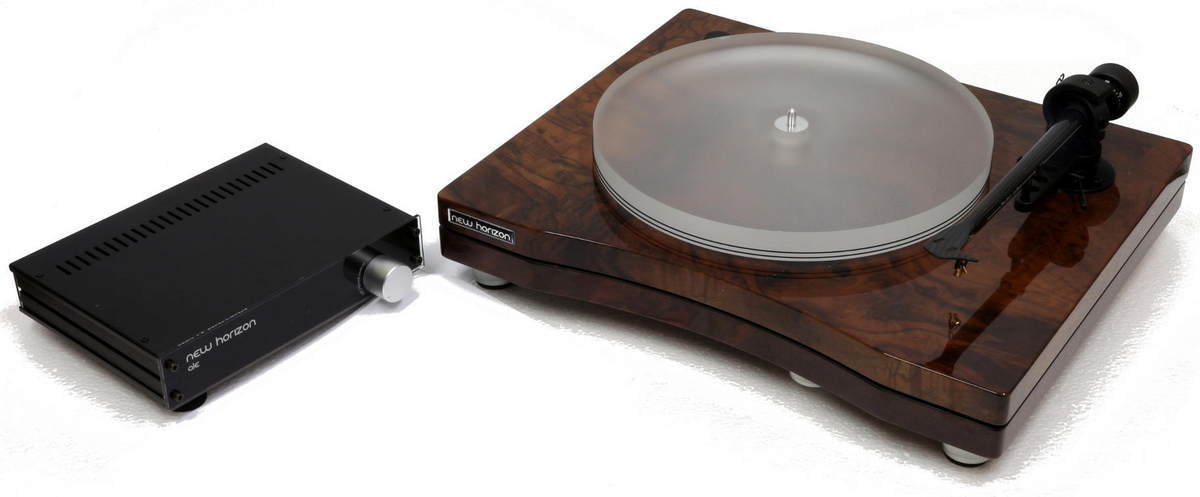 New Horizon Model GDS укомплектован карбоновым тонармом, двойным силиконовым пассиком, керамическим подшипником, калиброванным метакрилатным диском с обработкой всех кромок и отдельным внешним источником питания.