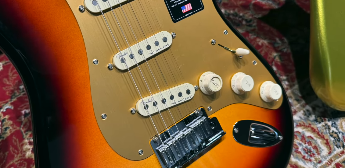 2-Point American Ultra Synchronized Tremolo с полированными седлами из нержавеющей стали обеспечивает стабильную интонацию и длительный сустейн. Locking Tuners и Ultra String Guide минимизируют проскальзывание струн, сохраняя точность настройки.