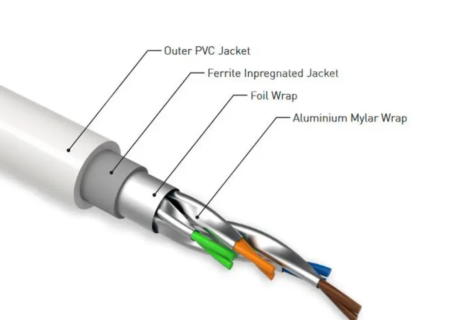 Применение разных скоростей скрутки пар проводников помогает свести перекрестные помехи к минимуму. Использование алюминиевой фольги и ферритовой обмотки дополнительно снижает уровень потерь. Благодаря этому кабель уверенно превышает стандарт CAT 8 по показателям потерь вставки и перекрестных помех. Это особенно важно в системах, где каждая деталь сигнала имеет значение, например, в студиях звукозаписи и Hi-End аудио.