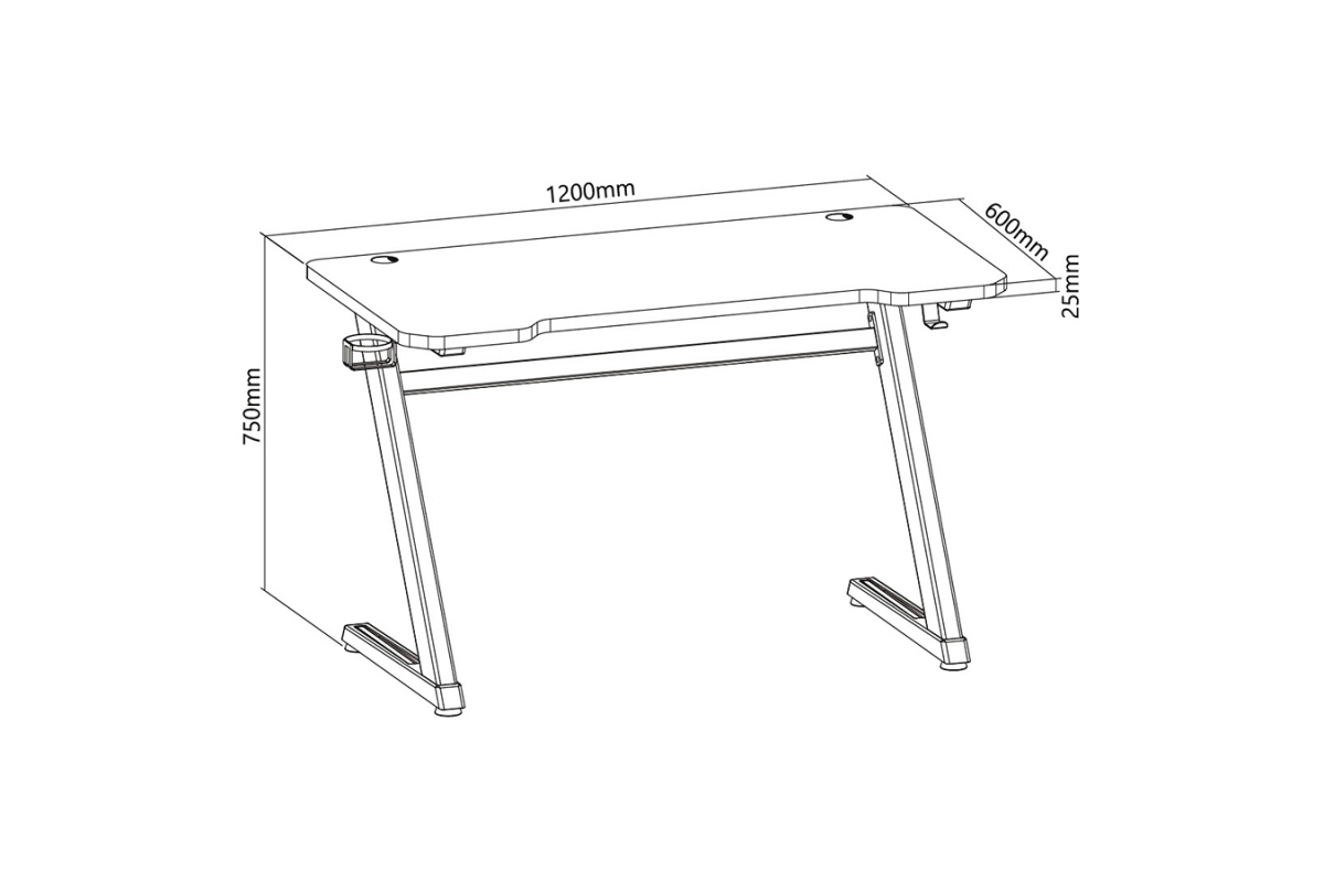 Высота столешницы создаёт оптимальное положение для работы стоя или сидя за барным стулом. Черное покрытие с карбоновым эффектом не только придает современный вид, но и защищает поверхность от царапин и потертостей. С помощью встроенных держателей для наушников и напитков, а также кабельных отверстий на задней панели, рабочая зона остаётся аккуратной и функциональной.