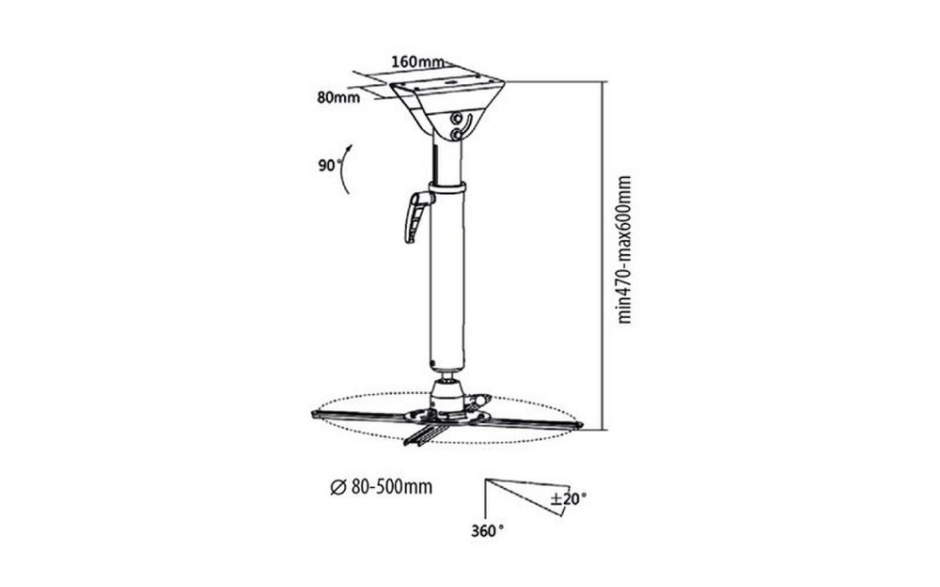 Регулируемая высота — телескопическая штанга с диапазоном от 820 до 1200 мм позволяет выбрать оптимальное расстояние от потолка до проектора.