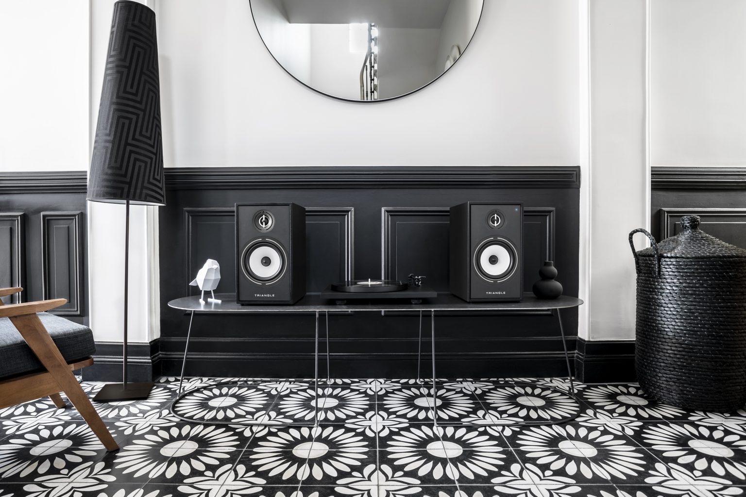 Корпуса колонок Triangle Borea Active BR02 BT из MDF оснащены перфорированными внутренними панелями из пены EVA, поглощающими вибрацию на низких частотах согласно концепции DVAS (система поглощения вибрации драйвера). Для серии АС Borea был разработан свой комплект динамиков. Прежде всего, это 25-мм купольный шелковый твитер EFS с интегрированным фазовыравнивающим элементом Efficient Flow System — эффективной системой потока, предназначенной для «гомогенизации высокочастотной диффузии». Пищалка получила неодимовую магнитную систему и установлена в компактном рупорном оформлении. Для защиты диффузоров АС Triangle Borea Active BR02 BT комплектуются грилями на магнитных фиксаторах.