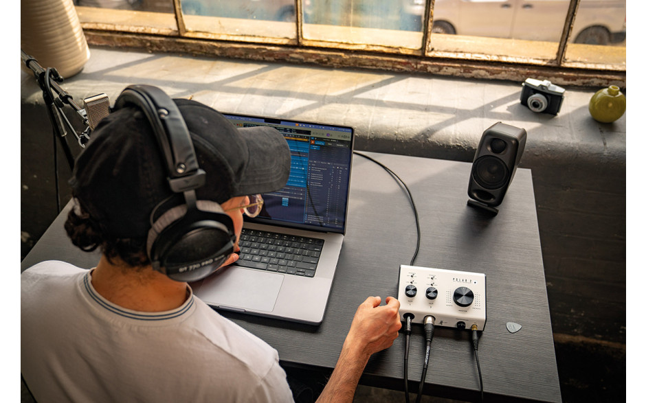 Цей аудіоінтерфейс забезпечує низький рівень шуму і стабільне А/Ц перетворення, що дає змогу фіксувати нюанси інструментів і вокалу без спотворень. Вбудовані передпідсилювачі високої точності гарантують чистоту сигналу навіть під час роботи з динамічними та конденсаторними мікрофонами. Конструкція корпусу мінімізує електромагнітні перешкоди, зберігаючи природну тональність джерела.