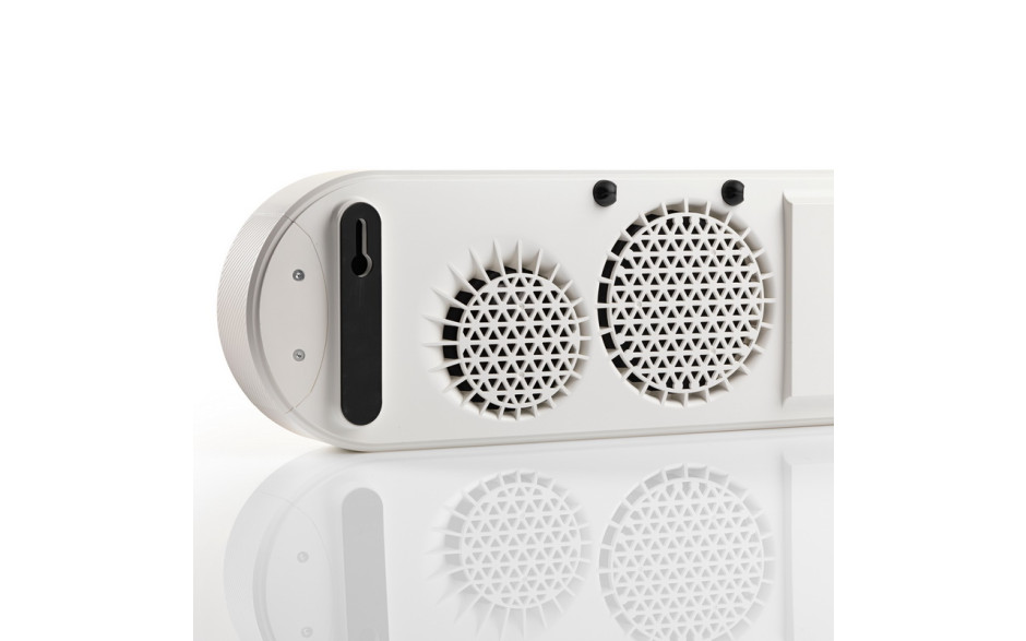 Очевидное отличие от других звуковых телевизионных систем - чрезвычайно элегантный внешний вид Dali Katch One. Корпус шириной примерно 86 см, изготовленный из низкорезонансного АБС, армированного стекловолокном, имеет глубину всего 65 миллиметров, имеет слегка закругленные углы и сияет с типичным скандинавским минималистским дизайном. Варианты установки и монтажа Dali Katch One также привлекают внимание: эту звуковую панель можно прикрепить к стене с помощью элегантных кожаных полосок или разместить на телевизионной стойке на прилагаемых роликах из натурального дерева. Если мощности драйвера и усилителя мощности в 4 x 30 Вт (RMS) вам недостаточно, то вы легко можете использовать сабвуфер для подключения отдельного активного сабвуфера. Источник и громкость можно выбрать непосредственно на устройстве или удобно управлять с пульта дистанционного управления с дивана. Хотя Katch One не побьет никаких рекордов в плане динамики и глубины, в обычных жилых помещениях звуковая система Dali обеспечивает абсолютно достаточную громкость и даже обеспечивает правильный звук и точный бас. Виртуальное расширение звуковой сцены также работает убедительно: как с воспроизведением музыки, так и со звуком фильма, встроенный DSP нажатием кнопки обеспечивает удивительно широкое и убедительное звуковое поле без изменения цвета - великолепно! |