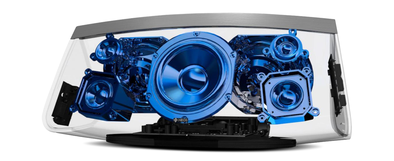Топовийактивний спікер Denon HEOS 7 HS2продовжує еволюційну лінію флагманської "сімки" із серії HEOS і відрізняється від неї можливістю програвати аудіо високої роздільної здатності, а також наявністю на борту Bluetooth-приймача. Дизайн корпусу моделі має схожість із призмою, вершина якої увінчана металевою пластиною, що пройшла спеціальну обробку. Щодо активних драйверів, то їх тут п'ять: по парі твітерів та СЧ/НЧ-динаміків, а також один вуфер. Кожен із них «розгойдується» окремим підсилювачем D-класу. Крім цього для посилення басової секції задіяні два пасивні випромінювачі.Оптимізувати саунд допомагає DSP з алгоритмами прецизійної обробки, що використовуються у проф. студії. Динаміки прикриті незнімними грилями з акустично-прозорою тканиною. У нижній частині лицьової панелі знаходиться статусний індикатор. У ліву боковину корпусу вбудований міні-джек для навушників, а в праву - "коромисло" регулятора гучності та клавіша відключення звуку. У тилу знаходиться лінійний вхід (3,5 мм AUX IN), USB для зовнішніх накопичувачів, Network-інтерфейс (LAN) та роз'єм для джерела живлення.Там є кнопки для встановлення Wi-Fi- і Bluetooth-з'єднань, а також мініатюрний LED-індикатор. |