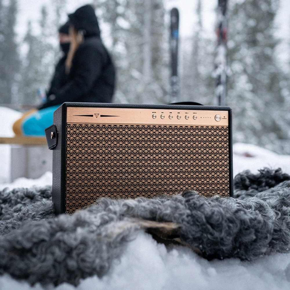 Природный и хорошо сбалансированный звуковой образ создается жестким бумажным диффузором среднечастотного динамика, который благодаря специальному покрытию может воспроизводиться как на низкой, так и на высокой громкости, и шелковым баневым твиттером с высококачественным неодимовым магнитом, обеспечивающим четкое и детализированное звучание. . Чтобы бас был мощным и точным, корпус из МДФ и оснащен фазоинвертором, вместе с акустическими ножками эти функции минимизируют потери эффекта от вибраций и позволяют вуферу работать на полную катушку. Панель управления и специальная решетка Dynavoice выполнены из анодированного алюминия медного цвета, что придает им дополнительную прочность, а прилагаемый ремешок облегчает перенос динамика.