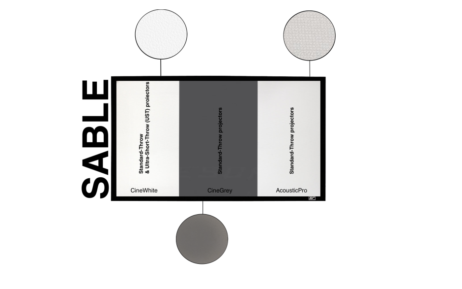 Полотно CineWhite виготовлено з багатошарового зносостійкого матеріалу, що забезпечує стабільну передачу кольору і довговічність. Його гладка матова поверхня гарантує рівномірний розподіл світла по всій площі зображення, зберігаючи точні відтінки і природні переходи.