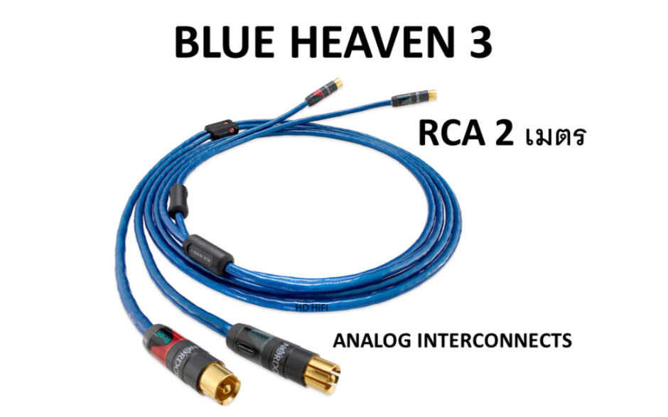 Конектори RCA з позолотою мінімізують окиснення і забезпечують стабільне з'єднання. Діелектрик із фторованого етилен-пропілену (FEP) підтримує високу діелектричну проникність. Кабель підходить як для стереосистем, так і для багатоканальних конфігурацій. Легка і міцна конструкція мінімізує мікрофонний ефект під час руху кабелю. Nordost Blue Heaven 3 забезпечує точність, близьку до студійної, передаючи атмосферу запису і динаміку інструментів.