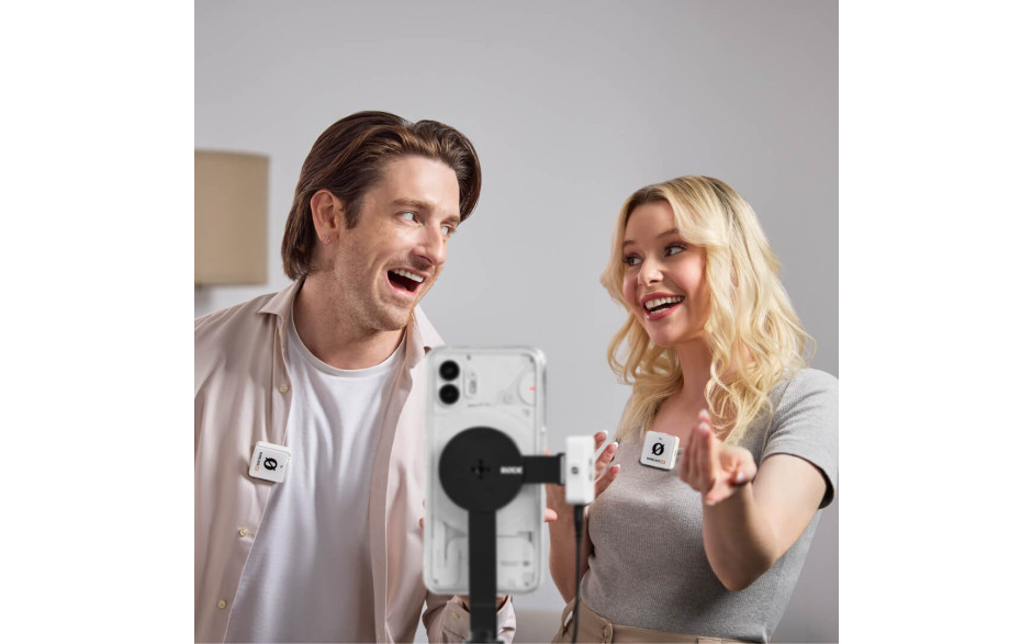 Передавачі та приймач автоматично сполучаються з коробки, що прискорює процес налаштування. Мікрофон підтримує під'єднання до камер, смартфонів і комп'ютерів, мінімізуючи затримку сигналу і забезпечуючи синхронність звуку з відео.