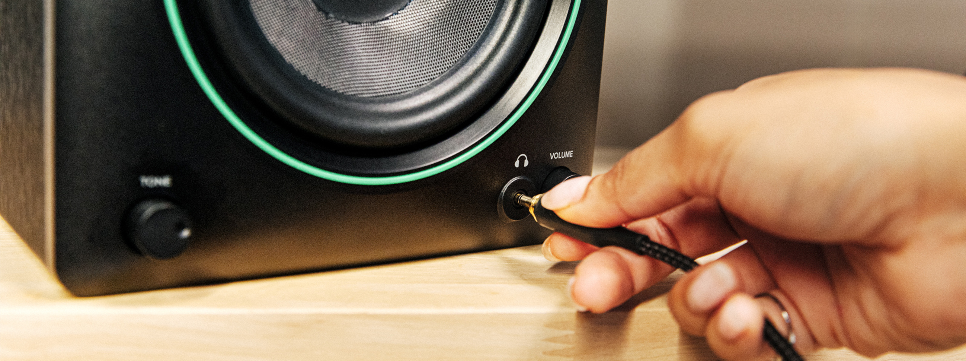 На передній панелі розташований вихід під навушники. При його використанні основні динаміки відключаються автоматично. Такий підхід зручний для тих, хто працює вночі або потребує повної ізоляції під час зведення.