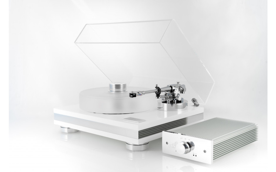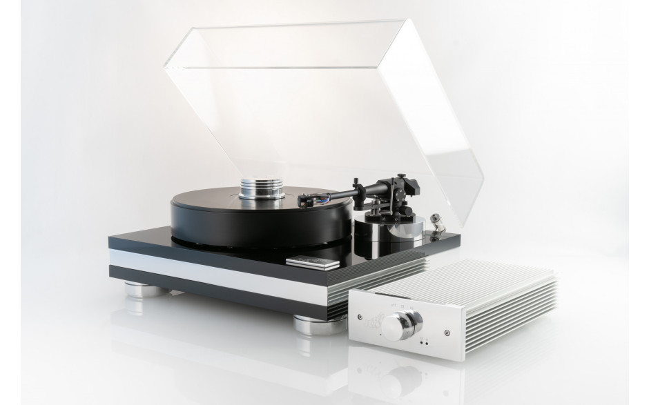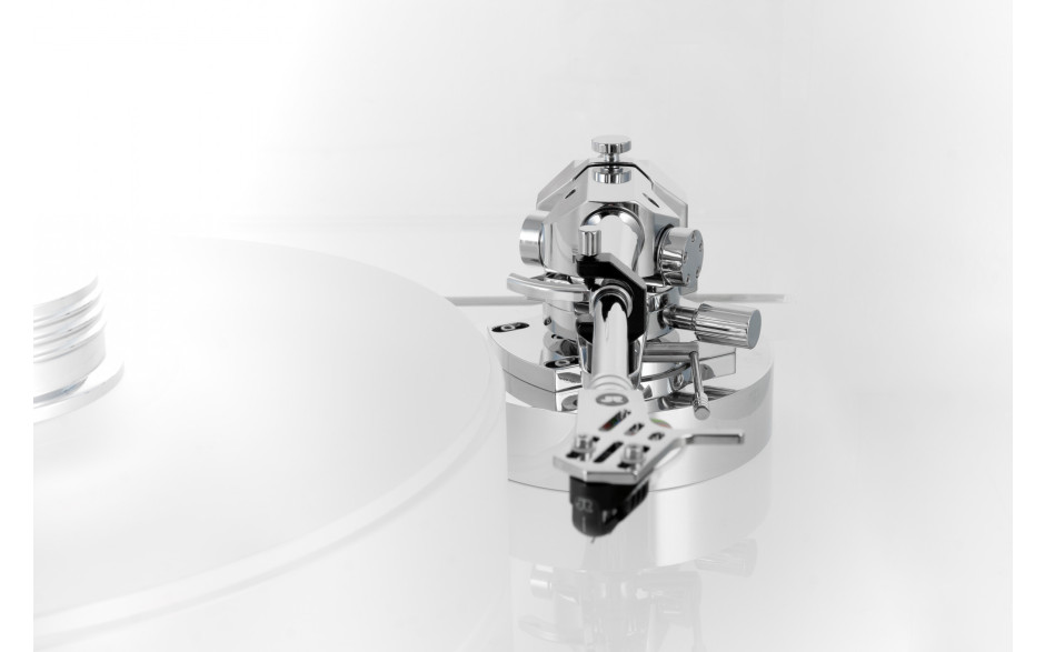 Тонарм не входить до стандартної комплектації, що залишає користувачеві можливість підібрати конструкцію під власний характер звучання і вимоги до системи. Відсутність вбудованого фонокоректора також дає гнучкість - можна вибрати зовнішній блок з потрібними параметрами посилення та опору для ММ або МС картриджів, забезпечуючи точне узгодження всього аналогового ланцюга.