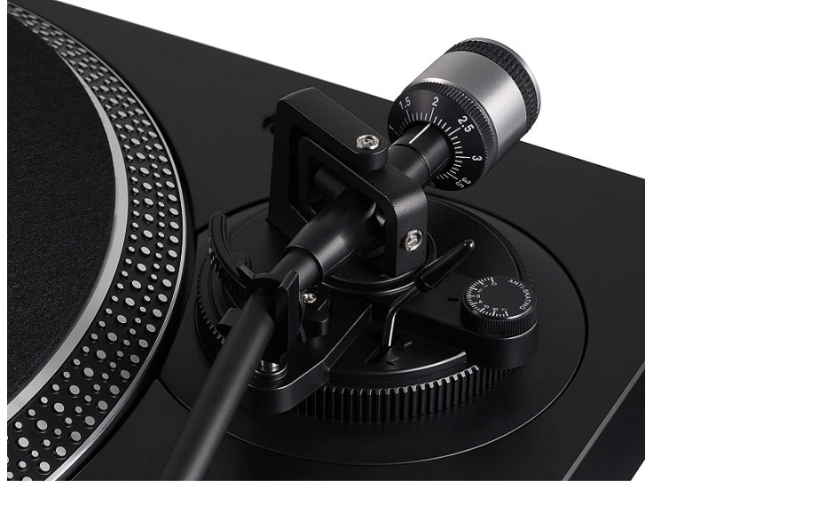 - Регульований S-подібний тонарм з гідравлічним демпфуванням.